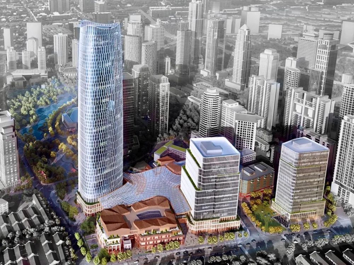 太平洋新天地商业中心位于上海市黄浦区淮海中路街道,由太平洋保险、瑞安房地产及上海永业集团联合开发,总建筑面积(含地上及地下)约为39万㎡,由一栋250m高的地标超甲级办公、两栋100m左右高度的甲级办公以及裙房商业组成,是20年来新天地板块最大体量的商业体。其中商业面积约8万㎡,预计2025年上半年开业。