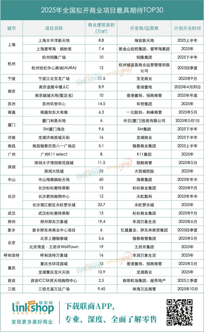 附:2025年全国拟开商业项目最具期待TOP30