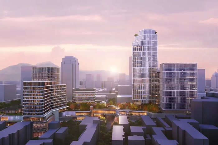 项目以西湖文化与景致为灵感,打造了由多座高低形态不一的塔楼、四通八达的连廊和怡人的空中花园构成的综合体建筑群。比如利用了商场的顶部,设计了一个绿色屋顶,将多个建筑空间延伸并串联,为城市创造了一个全新的公共天空公园。约10万㎡高端购物商场,将汇聚国际顶级奢侈品牌、高端餐饮及新兴生活方式等业态。