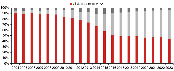 长期来看,我们预计中国20万元以上市场份额有望在45%-50%,主要基于:1)20万元以上市场代表结构升级,对照美国当前75%轻卡的渗透率,我们认为未来中国SUV渗透率可能达到60%-65%,2024年前9月我国20万元以上车型占比为37%,若加上SUV的提升空间,预计长期份额在45%-50%;2)对照日本市场,日本标准乘用车可以作为衡量日本中高端车型的大类,可以类比到我国20万元以上的市场。日本标准乘用车市场2023年占比约44%;3)对照欧洲市场,欧洲销量前十燃油车型均价约2.5万欧,折合人民币约20万元,前十车型中按销量比超过2.5万欧的份额为45%。