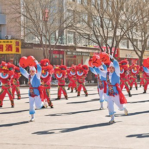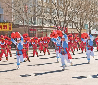 陕西榆林市靖边县,群众在表演秧歌。