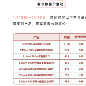 根据终端销售情况来看,2025年春节期间,白酒较往年促销力度明显增大,满减、买赠、开瓶有奖等促销方式层出不穷。国窖、剑南春、舍得等名酒均在春节期间开盖扫码活动。在1月中旬,茅台在i茅台App上针对多款产品推出“满赠”“抽奖”“春节惊喜价”等活动。此前需要通过i茅台APP申购的茅台1935,价格已经从1188元降低至948元。