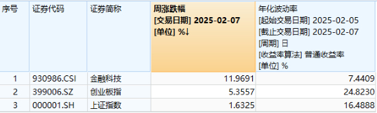 来源:Wind,统计区间2025.2.5-2025.2.7。中证金融科技主题指数基日为2014.6.30,发布日期为2017.6.22,2020-2024年年度涨跌幅分别为:10.46%、7.16%、-21.40%、10.03%、31.54%。指数成份股构成根据该指数编制规则适时调整,其回测历史业绩不预示指数未来表现。