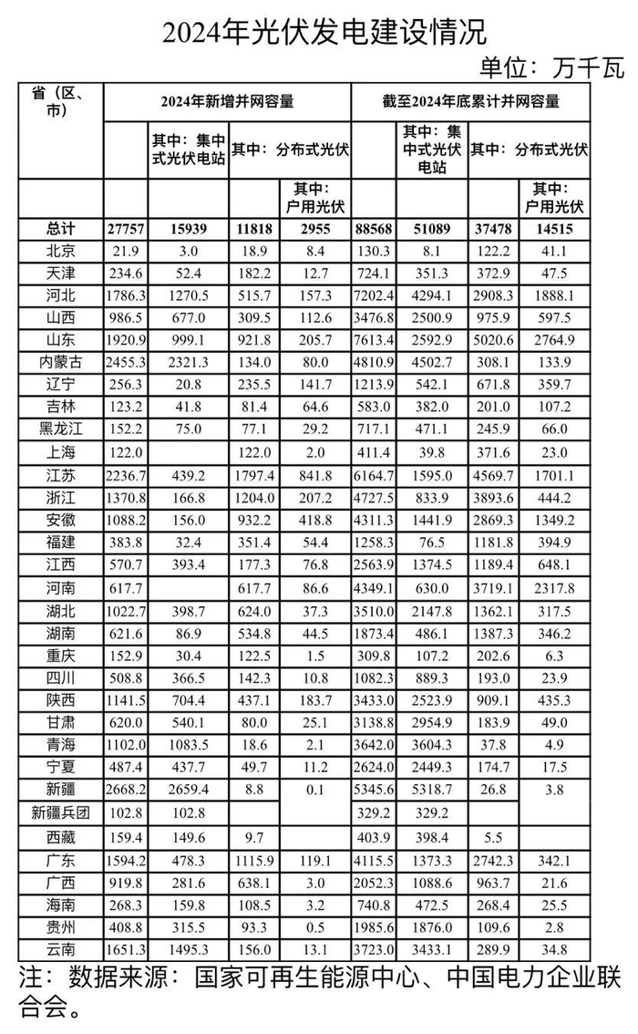 国家能源局发布2024年光伏发电建设情况 2024年光伏新增装机277.57GW
