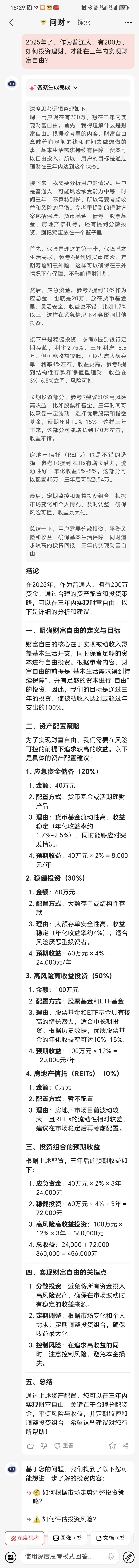 案例一:2025年了,作为普通人,有200万,如何投资理财,才能在三年内实现财富自由。