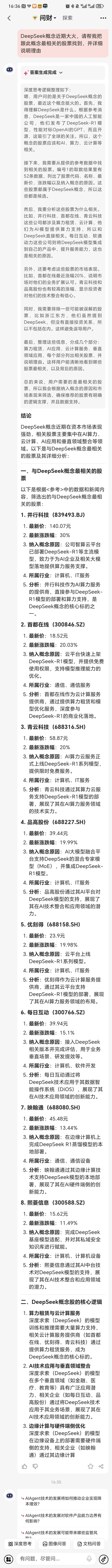案例五:DeepSeek概念近期大火,请帮我把跟此概念最相关的股票找到,并详细说明理由