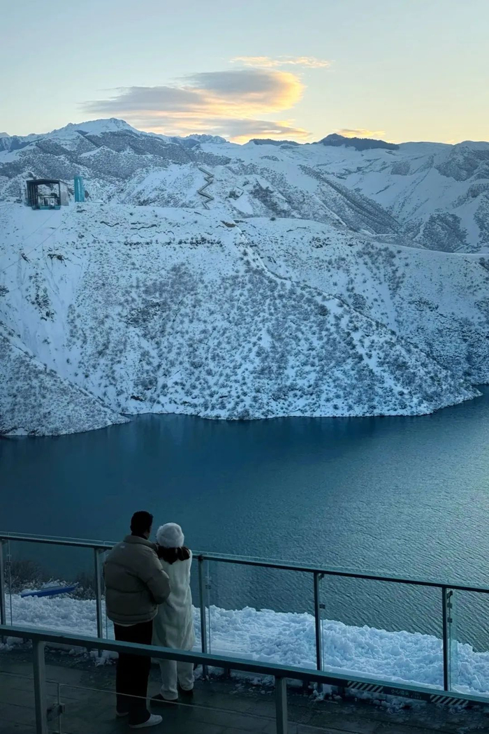 看着湖面和雪山,仿佛时间都慢了下来,这是属于新疆冬日的小确幸。