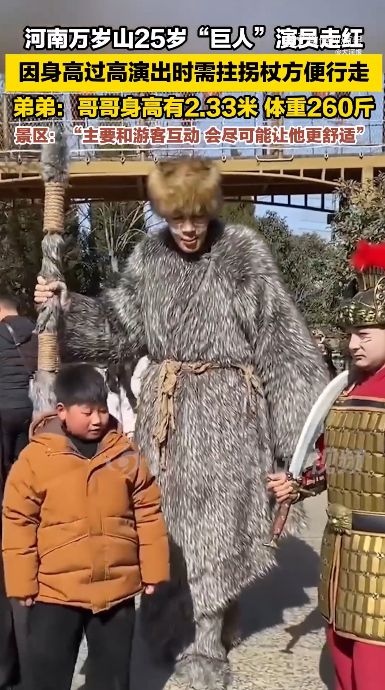近日,河南万岁山武侠城景区的“巨人”演员走红,引发大批关注。
