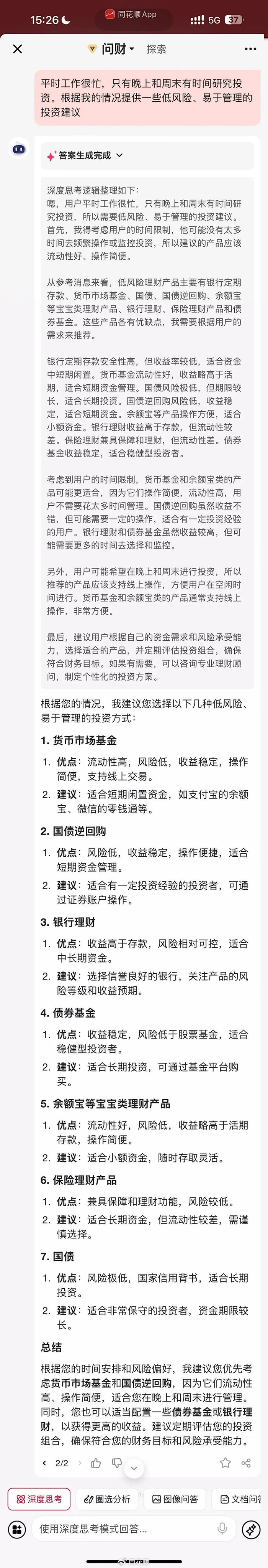 1、深度推理分析:通过思维链技术,模型将复杂的投资问题拆解为清晰的分析步骤,类似人类慢思考中的深度分析推理,尝试理解问题背后的逻辑关系,全面把握市场走势背后的逻辑关系。