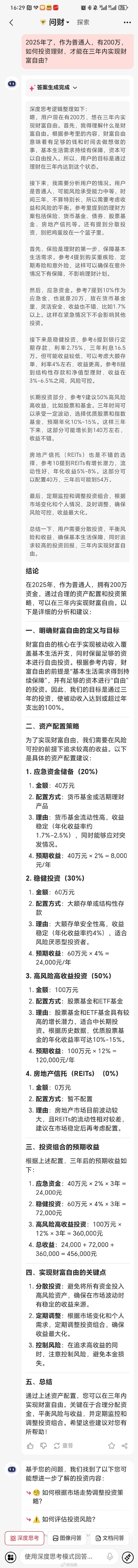 案例一:2025年了,作为普通人,有200万,如何投资理财,才能在三年内实现财富自由