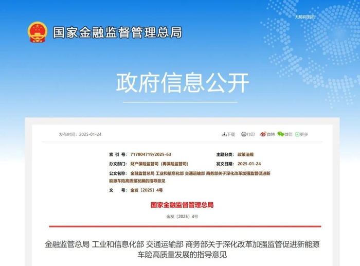2025年1月24日,春节前夕,新能源商用车市场迎来利好政策。国家金融监管总局、工业和信息化部、交通运输部和商务部四部委出台《关于深化改革加强监管促进新能源车险高质量发展的指导意见》(以下简称“《意见》”),这是我国首个新能源车险指导意见,新能源商用车上保险难的行业难题有望得到解决。