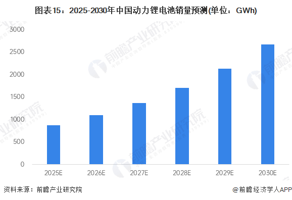 受新能源汽车、电动二轮车等带动,前瞻预计到2030年我国动力锂电池出货量有望超过2600GWh。