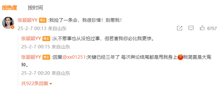 张颖颖在文中痛骂汪小菲“真的好恶”,称一个快50岁的男人绝对不会是傻白甜。并在评论区补充说,“我捡了一条命,我很珍惜!别惹我!”“从不惹事也从没怕过事,但若害我你必比我更惨。”