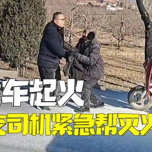 大爷的三轮车在路上起火,公交车司机看到后冲上去拿灭火器帮灭火。大爷跪地感谢,被公交司机一把扶起。目击者称当时看到觉得很感动,还是好人多。
