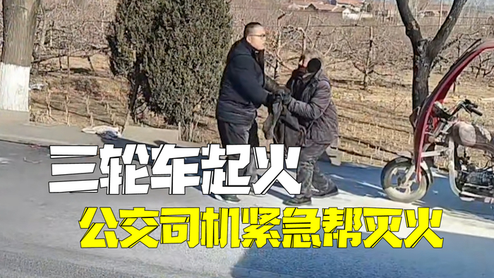 三轮车起火公交司机帮灭火 大爷欲下跪感谢被一把扶起