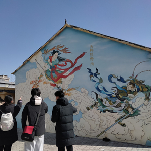 “这个壁画上描绘的就是哪吒在惩戒作恶黑龙,他左手拿着混天绫牢牢缠绕在龙身上,右手举着乾坤圈作势就要往下挥去……”在展览馆内,八十五岁高龄的张公课老人正热情地为游客们讲解着“哪吒闹海”的故事,“上至白发老人,下至少年儿童,在九湾没人不知道哪吒的故事。”张公课自己也不知道在这里讲了多少遍哪吒的英勇事迹。
