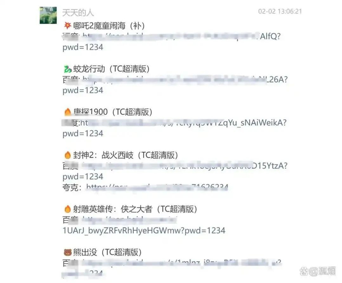由于今年春节档电影热度持续攀升,吸引了大量观众,也让不法分子看到了其中的“商机”,试图通过传播盗版资源引流和牟利——大年初三开始,多部春节档电影的盗版链接在社交平台上疯传。