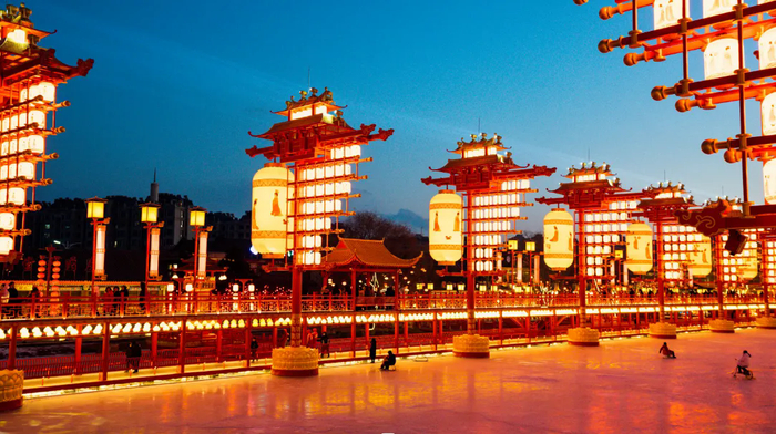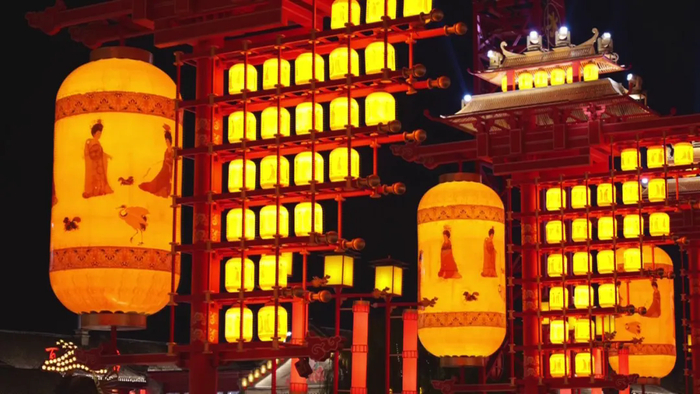 近百盏巨大的唐风灯笼同时点亮