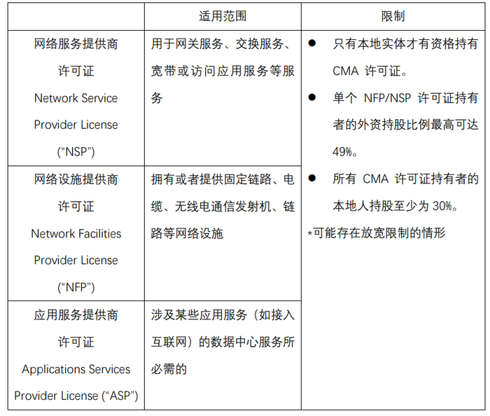 马来西亚的数据中心在一般情况下并不需要遵循1998年颁布的《通信和多媒体法》(Communications and Multimedia Act, “CMA”)所规定的许可证要求,除非其从事了该法律中明确规定的需要许可的活动。根据CMA的相关规定,数据中心提供商在特定情况下可能需要申请以下许可证: