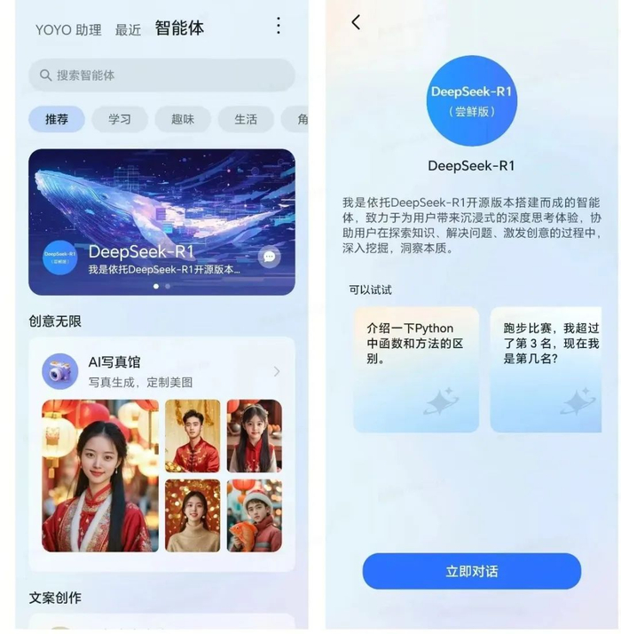 紧随华为步伐,2月8日,荣耀YOYO智能体商店上线DeepSeek-R1尝鲜版,成为第二家与DeepSeek达成合作的手机厂商。