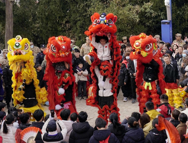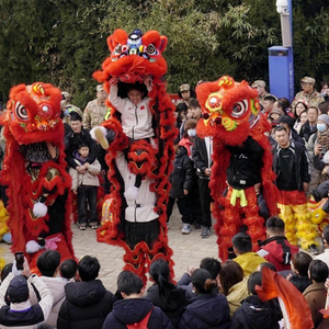 年轻的“小狮子”们在梅花桩上辗转腾挪,活力无限。浚县新东兴舞狮团团长孙军亮已经舞狮30多年,他告诉环球网记者,这些队员平均年龄只有18岁,从小就练习武术,有着扎实的基本功。