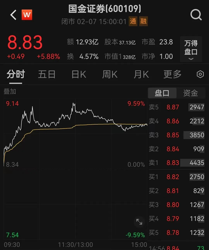 作为最早一批宣布接入DeepSeek的券商,国金证券在2月7日早盘的强劲上涨中,一度冲击涨停板。