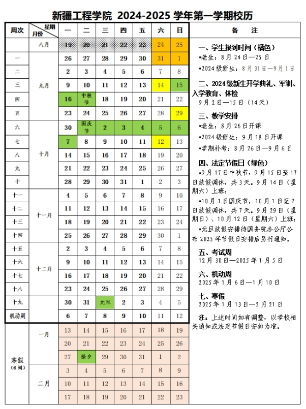 放假时间:期末考试时间为2024年12月30日—2025年1月5日(共7天),考试结束后即可离校。