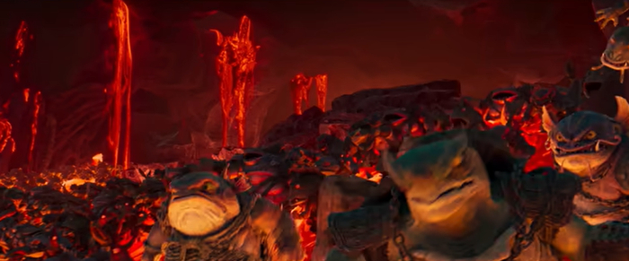 “具体到电影画面上,海底妖族攻打陈塘关的环境特效以及渲染就是我们做的,主要元素为岩浆、海水以及烟雾,以及一些建筑道具等场景元素的破碎制作”,竺凌帆介绍道,制作过程中,最具挑战性的是大规模群集与岩浆的交互,“我们进行了多次迭代,此外,影片中的一些特效场景,如‘水淹龙宫’和‘海底乌龟出水’,也花费了大量时间进行细节打磨。”