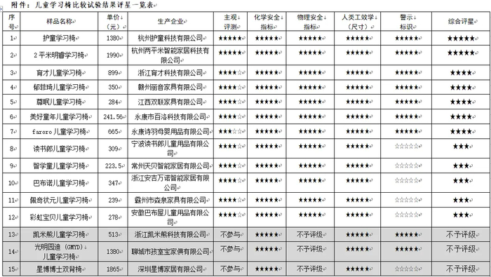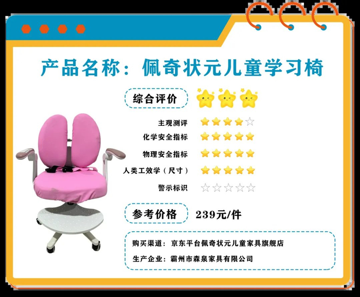 快看!你知道儿童学习椅怎么选吗? ——江西省消保委发布15款儿童学习椅比较试验结果