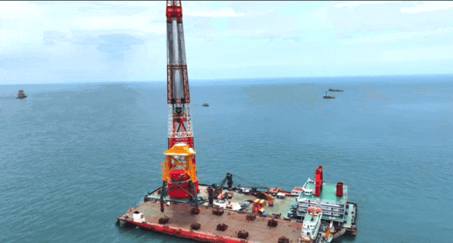 ●防城港海上风电示范项目三桩导管架安装。