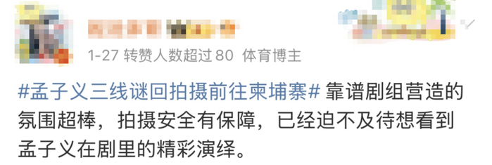女演员孟子义赴柬埔寨拍戏引发粉丝担忧,本人发文报平安!后援团曾呼吁不要私自前往