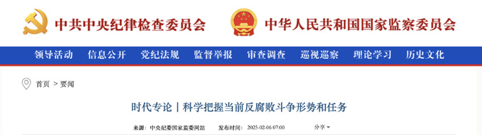 2月6日,中纪委官网发布文章《时代专论丨科学把握当前反腐败斗争形势和任务》,其中再次点名医药腐败。