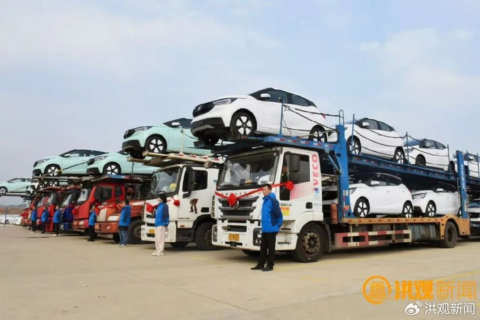 2月5日,新春上班第一天,伴随着响亮的鸣笛声,装载着数百台新能源车的物流车队缓缓驶出厂区,奔赴全国各地,吹响了江铃集团新能源征战2025年全新目标的号角。