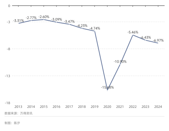 2019年可以算作本次牛市的起点。图2显示,2013年-2018年,美国“财政赤字率”(财政赤字率=联邦财政赤字/美国GDP)在低位徘徊,但2019年接近-5%,2020年更是达到了-15.7%,2021年为-10.9%,2022年略有好转,但2023年、2024年“财政赤字率”又开始上升。一般认为财政赤字率超过3%是不可持续的,超过6%更是值得担心的。
