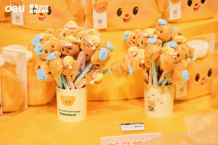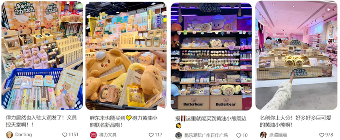 在此前和黄油小熊的联名合作中,得力不仅入驻了千家名创优品的门店,还在北上广深打造了12家黄油小熊主题店,系列产品在多家门店联合首发当天便被抢购一空甚至断货。