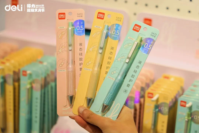 得力的产品开发不仅面向日常的书写创作,还在技术融合、材料专研、环保创新、人体工学等领域不断探索,比如推出行业首创的肤感液态硅胶笔、自主专研行纭纸、工业设计大师柴田文江联名的全自动削笔机等创新“黑科技”产品。