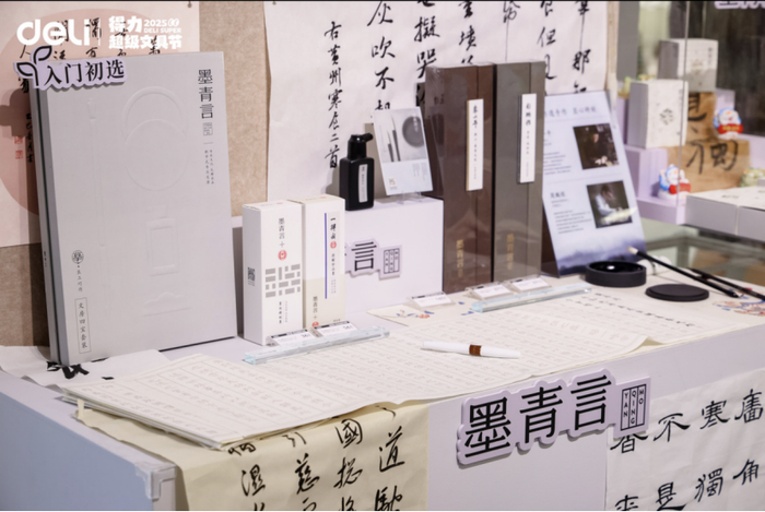 墨青言则是得力旗下新中式专业文房用品品牌,为书法初学者和专业爱好者精心打造笔墨纸砚等。它结合了非遗工艺,追崇匠心手作、优选原料和精研配比。
