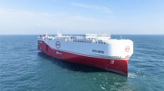 1月7日,中国船舶集团有限公司旗下广船国际有限公司与中国船舶工业贸易有限公司作为联合卖方,为比亚迪股份有限公司建造的第一艘7000车液化天然气(LNG)双燃料动力汽车运输船(PCTC)“BYD HEFEI”号起航。该型船是广船国际建造的系列汽车运输船的“绿色低碳升级版2.0”,该船总长199.9米,型宽38米,设计吃水9米,设计航速18.5节,采用双燃料推进系统,配备永磁轴带发电机,同时采用节能装置、减阻防污漆等各类节能措施,二氧化碳排放将减少30%,满足智能船舶要求,是一艘绿色智能、环保高效的汽车运输船。