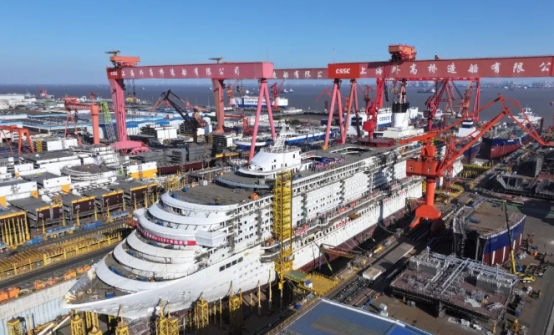 1月15日,我国第二艘国产大型邮轮完成全船主船体贯通,标志着第二艘国产大型邮轮进入快速建造阶段,计划2026年交付。从入坞总装搭载到全船贯通,仅用时不到9个月时间,较首制船缩短2个多月,标志着外高桥造船在初步掌握设计建造关键核心技术的同时,向着系列化、精益化和高效化建造的大型邮轮2.0目标又迈出坚实一步。