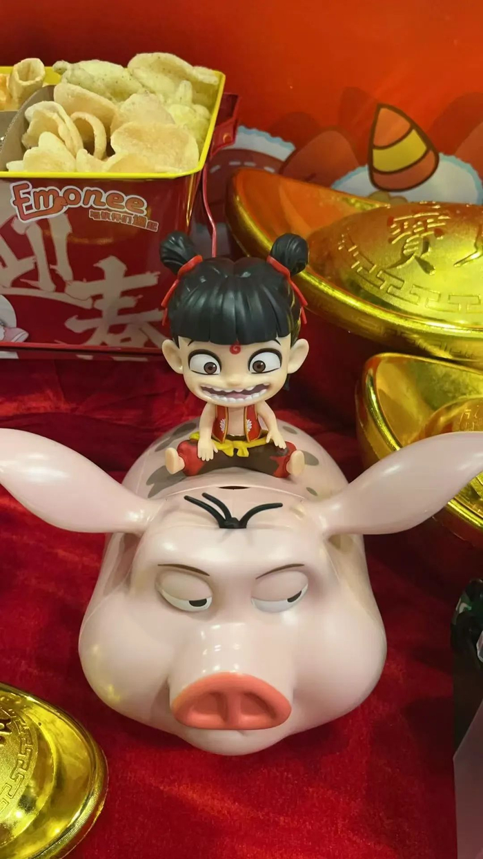 比如这个哪吒造型爆米花桶,在春节假期就已售罄,二手转手价格甚至翻倍。
