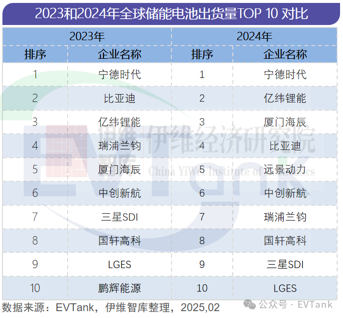 2024年全球储能电池出货量369.8GWh,TOP10企业排名变化明显