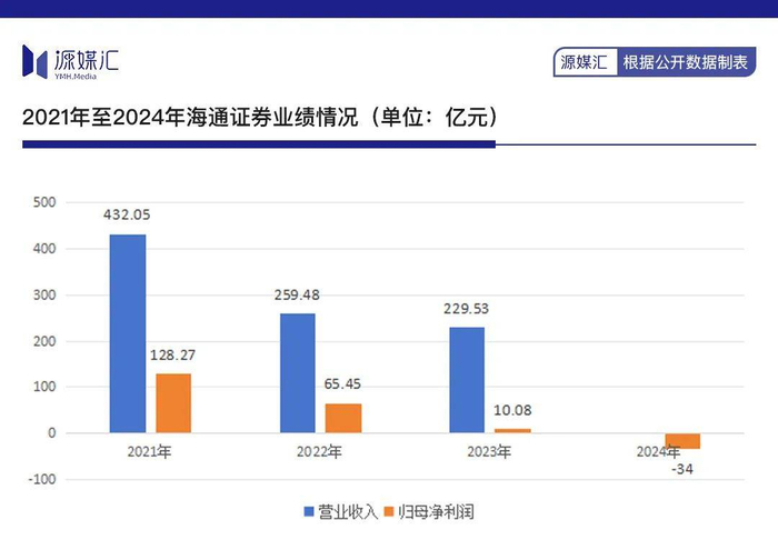 仅仅4年时间,海通证券从云端跌落,由一家归母净利润超百亿券商,堕落为一家净亏损超30亿元的券商。