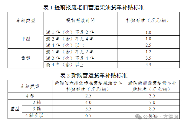 2025年1月8日,国家发展改革委、财政部联合发布《关于2025年加力扩围实施大规模设备更新和消费品以旧换新政策的通知》(发改环资〔2025〕13号)。文件明确:在落实2024年支持政策基础上,将老旧营运货车报废更新补贴范围扩大至国四及以下排放标准营运货车,补贴标准按照《关于实施老旧营运货车报废更新的通知》(交规划发〔2024〕90号)执行。