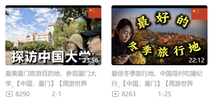 韩国旅游博主“一刹那_ichalla”是一对韩国夫妻,会说中文,从北到南在华夏大地“周游世界”。每周,他们在B站上发2篇旅行日志,厦门是他们的“102站”“103站”。在厦门,他们去了鼓浪屿和厦门大学,感叹鼓浪屿的安静、候船大厅的整洁、厦门大学的美丽。