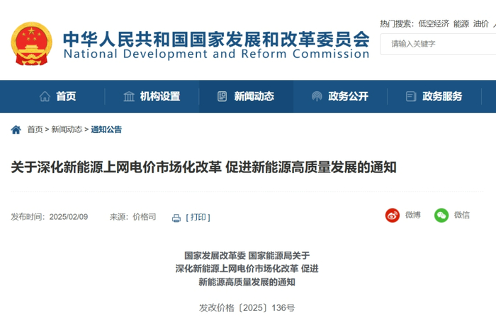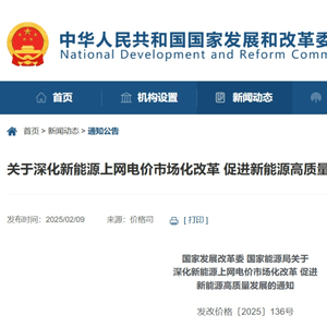 2月9日,国家发展改革委发布《关于深化新能源上网电价市场化改革 促进新能源高质量发展的通知》。