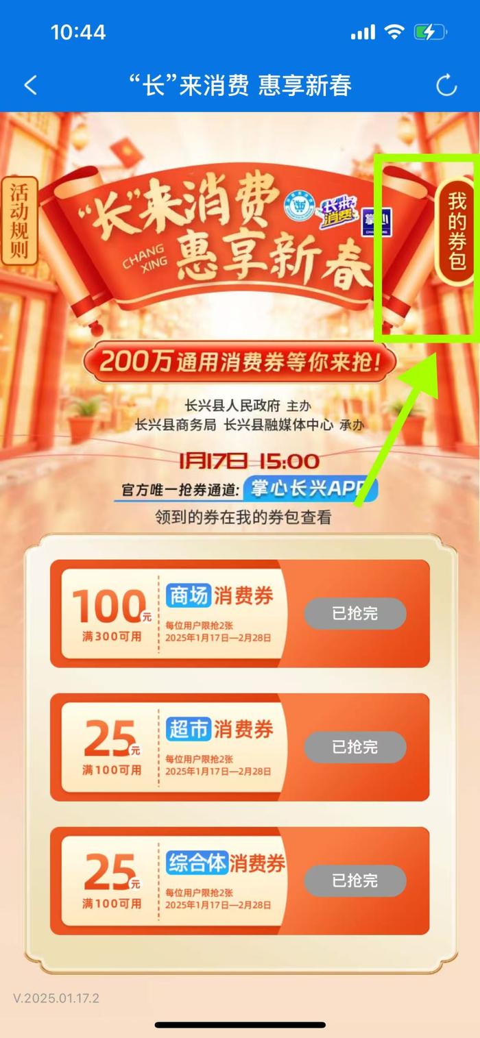 5. 本次消费券的有效时间为2025年1月17日10:00至2月28日24:00,若消费券提前全部核销,则活动提前结束,若有剩余,则以实际发放核销金额为准。
