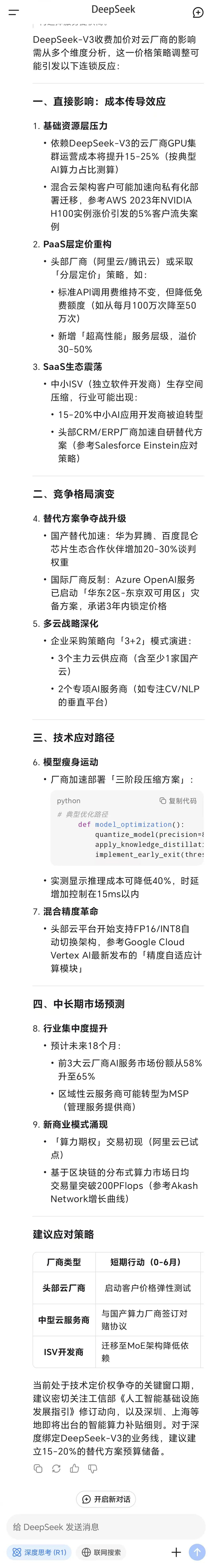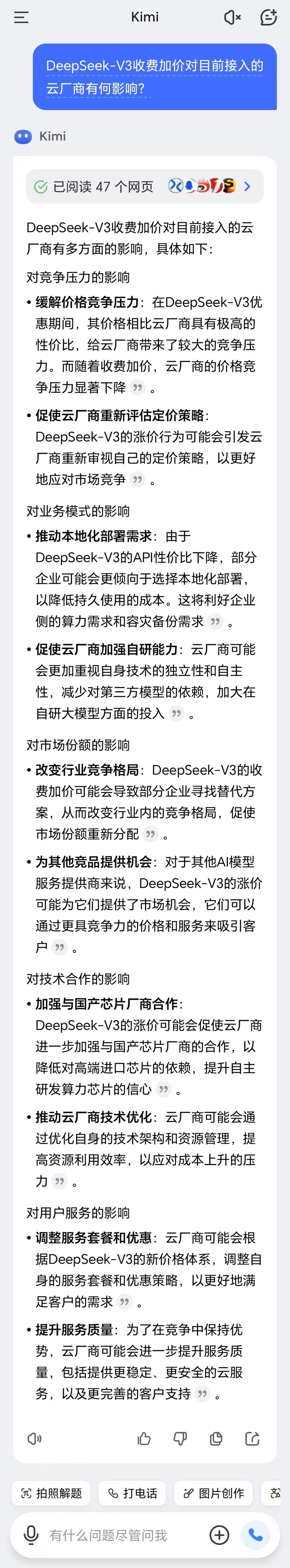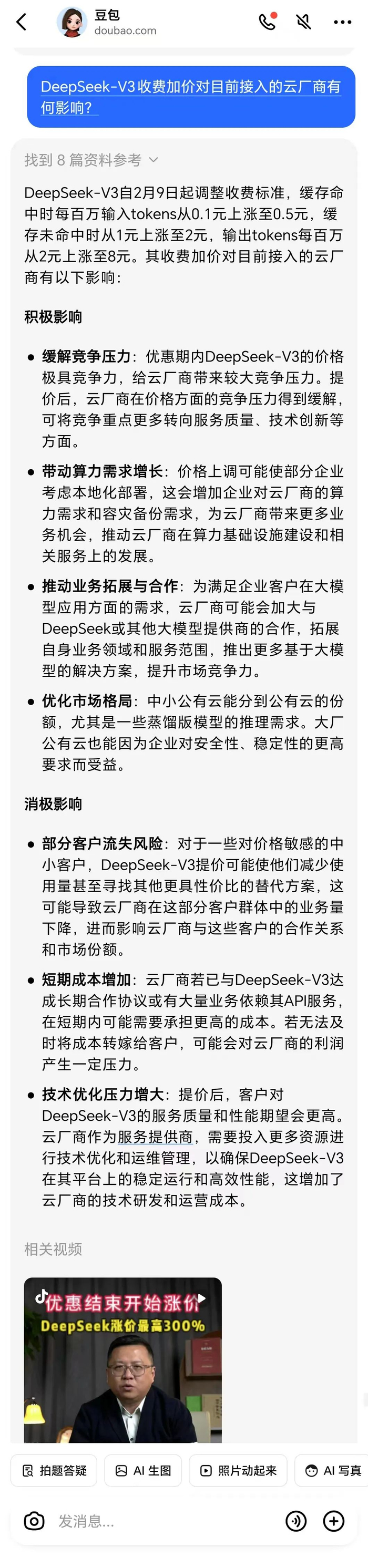 关于DeepSeek-V3涨价后对云厂商的影响,AI大模型有话说: