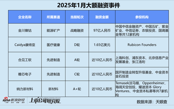 创投月报 | 1月融资量价齐跌:鼎晖投资、元禾璞华设并购基金 金川镍钴97亿融资刷新行业纪录