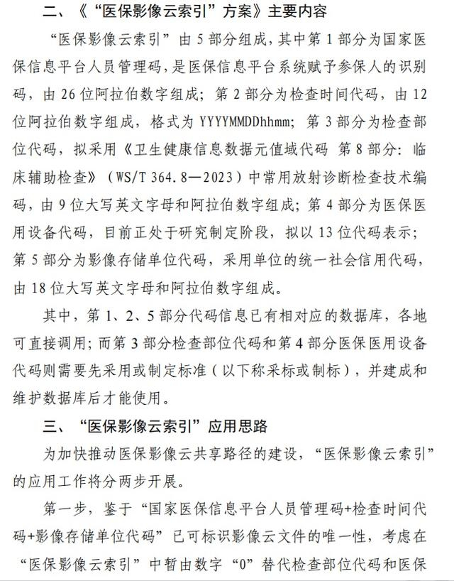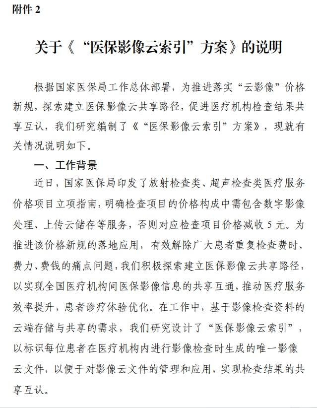 为助力探索建立医保影像云共享路径,加强对影像云文件的管理和应用,国家医疗保障局组织力量编制了“医保影像云索引”,用以标识每位患者在医疗机构内进行影像检查时生成的唯一影像云文件,现向社会公示。欢迎行业同仁、社会公众关注,并可通过邮箱的形式对“医保影像云索引”提出宝贵的意见建议,意见反馈截止时间为2025年2月14日。