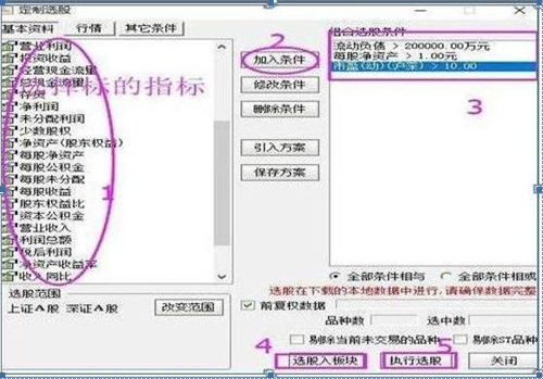 第五步:从抵抗风险能力强股票想要找到抵抗风险能力强的指标可以从上市公司的负债率,市净率,现金流动比等指标作为选股,根据这些指标筛选出来的个股加入自选;